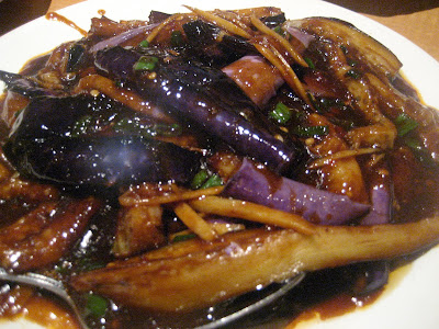 While both the eggplant and the tofu were in the same brown sauce, I didn’t have the feeling that we’d been given the same dish with only the main ingredient switched. The attendant sauce seemed to sing a different tune in each case, working in tandem with the tofu while providing a secondary flavor to the eggplant.