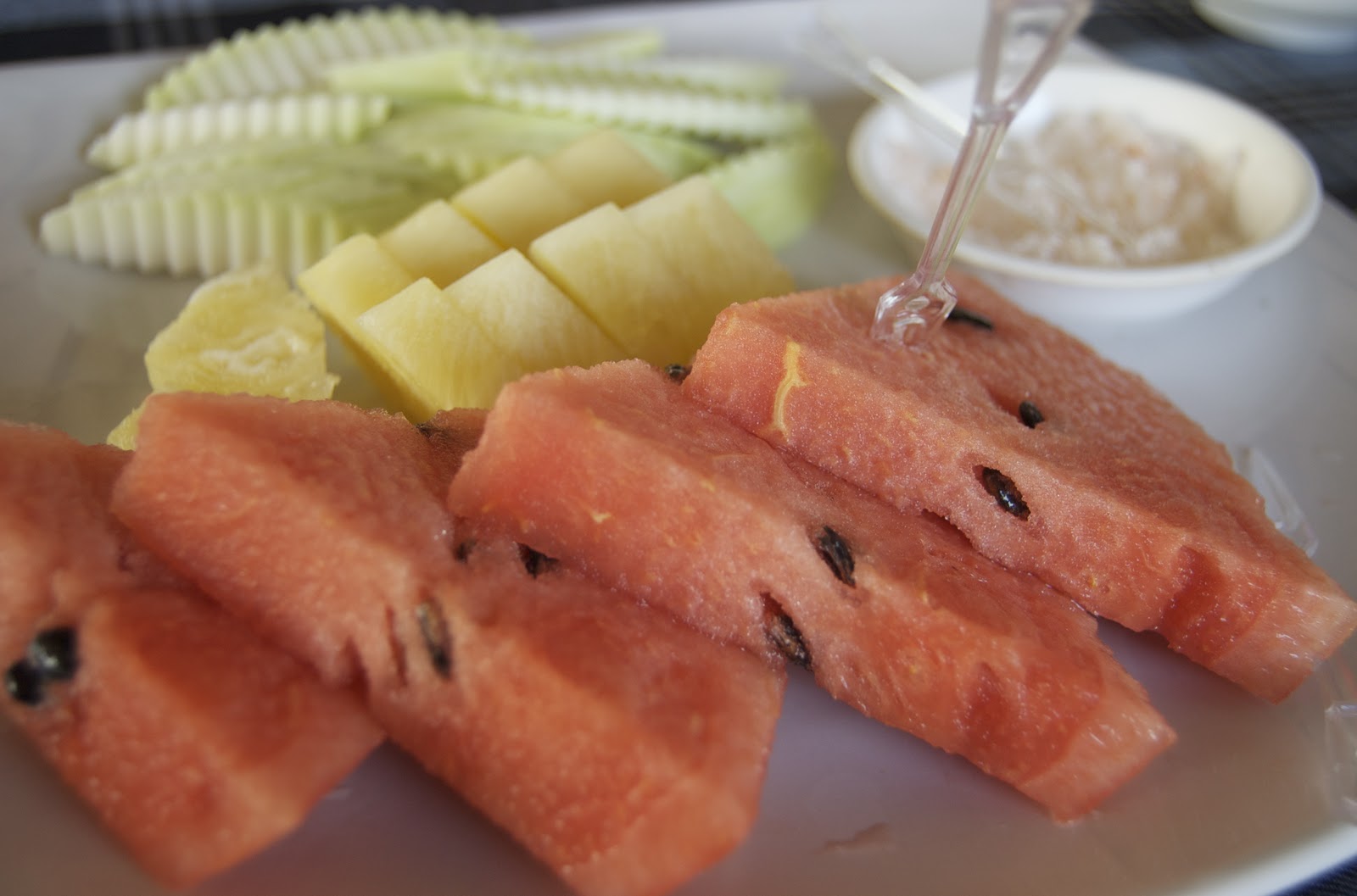 Chez Pim offers a good recipe for making your own prik kab klua and notes that while it’s great on sweet, in-season fruit, it also helps make not-quite-so-sweet fruit much more palatable.